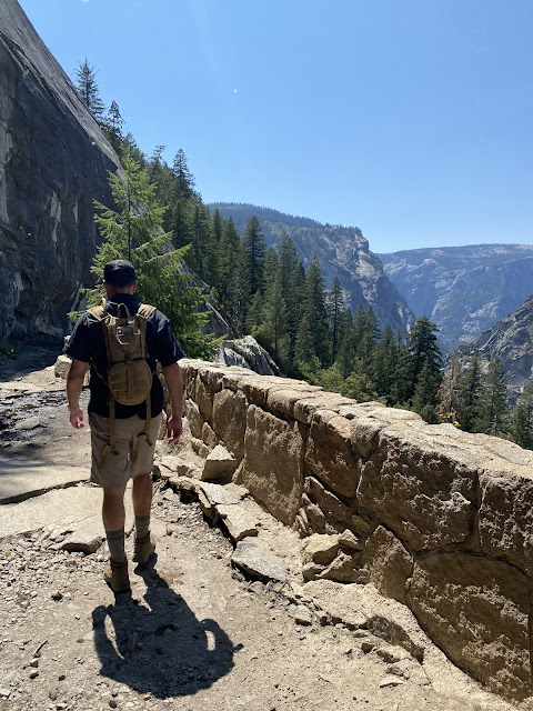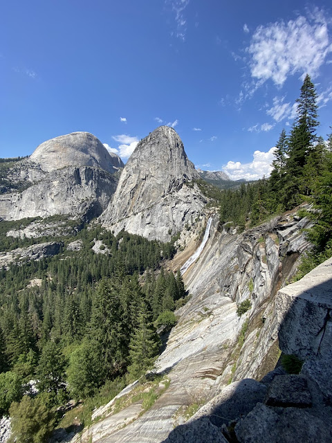 I took this at the top of Sub Dome, which is .25 miles of exposed switchbacks that occurs directly before Half Dome. I've seen a lot of people say that Sub Dome was more difficult than Half Dome because of the stairs, the relentless sun (very little shade), the switchbacks, and at one point you're not even climbing steps but scrambling up rock -- but I liked it! (My husband, not so much.)
